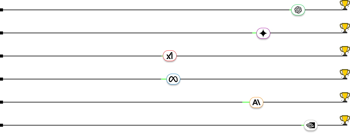 From Top to Bottom: Open AI, Google Gemini, xAI, Meta AI, Anthropic, NVIDIA.